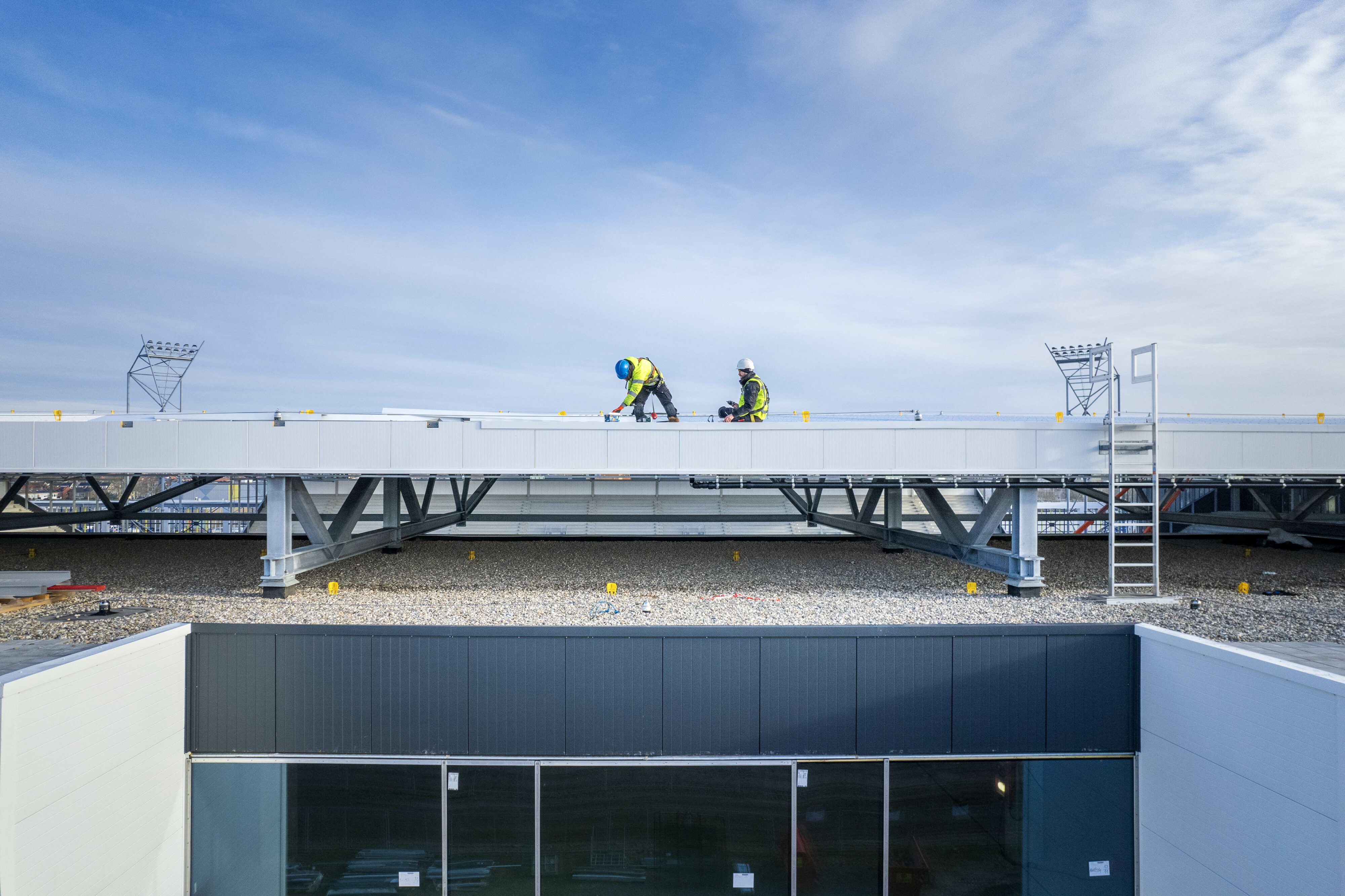 Door een optimale afstemming tussen de maatvoering van de dak- en gevelelementen en het ontwerp, in combinatie met de engineering volledig in 3D en de realisatie vanuit de het ”prefab” bouw principe, konden alle gevels binnen 8 maand gerealiseerd worden. Wij kijken positief terug op de samenwerking met alle betrokken partijen! Dit project is wat ons betreft typerend voor datgene waar Metaalbouw TSV voor staat, namelijk ”Vakbekwame Projectbeheersing”.